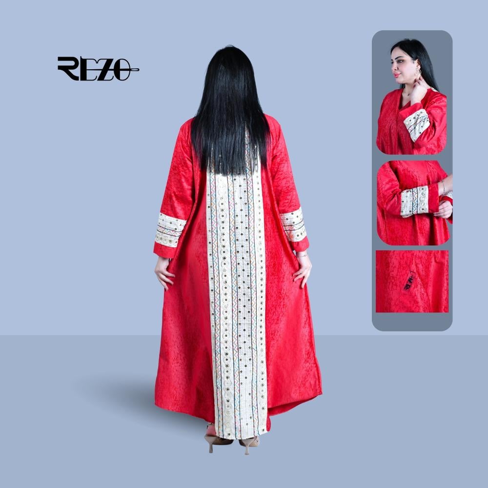 تصميم أنيق بقماش ناعم وانسيابية راقية يمنحك حضورًا هادئًا ولمسة فخامة تبرز ذوقك في كل إطلالة.، مع تطريز خلفي مميز وتفاصيل أكمام أنيقة تضيف لمسة فخامة